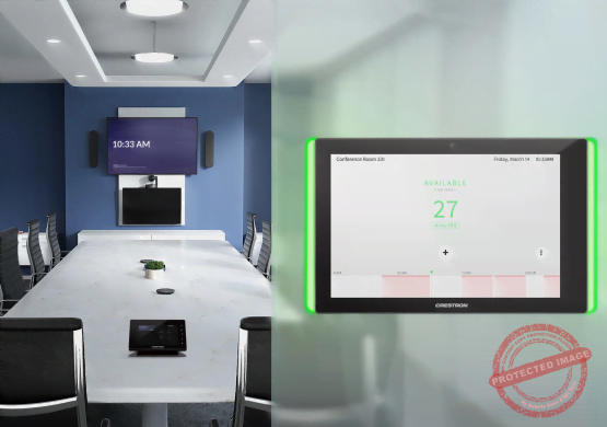 Al integrar la programación del horario de la sala en su software de red existente, su equipo puede programar reuniones de manera normal, pero también localiza simultáneamente una sala disponible y la reserva para ese tiempo de reunión. Para una mayor conveniencia, puede programar una reunión de seguimiento mientras está en su reunión actual. Se instalan pantallas táctiles fuera de las salas de reuniones que muestran las reuniones programadas existentes y permiten que otros vean la disponibilidad de la sala y reserven una reunión. La iluminación retroiluminada a cada lado del panel se ilumina en verde para indicar una sala disponible, Mantenga organizados sus equipos y salas con estas funciones de programación de salas.